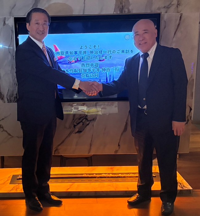 ・于総裁と平井知事は、今後路線再開に向けて定期的にコミュニケーションを図りながら、関西空港や神戸空港の同社便を活用した本県への誘客を図り、米子路線が再開できる環境を共同で作っていくことで合意した。