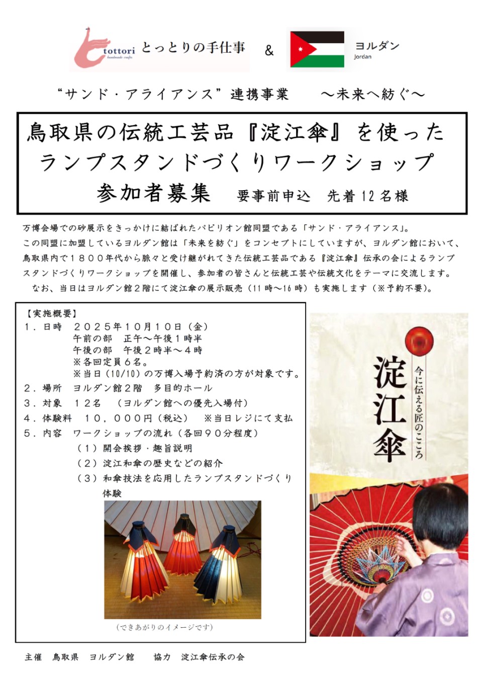 サンド・アライアンス連携事業 大阪・関西万博ヨルダン館での鳥取県伝統工芸品『淀江傘』を使ったランプスタンドづくりワークショップ開催