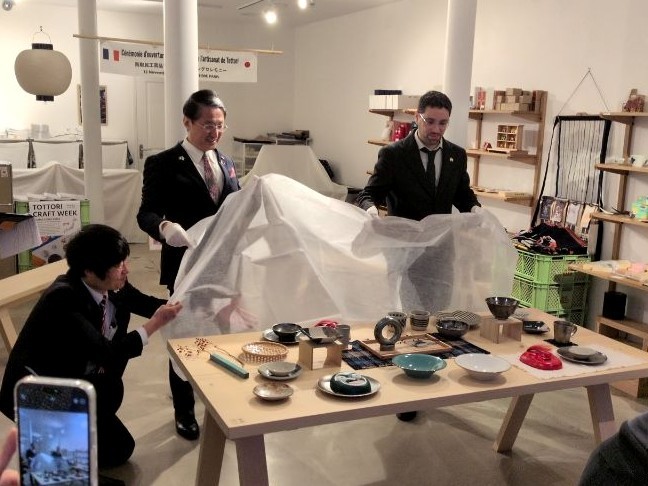 ・鳥取県が、パリ文化発信の中心地・マレ地区のセレクトショップ「DEJIMA STORE」と連携し開催する「鳥取民工芸品フェア(TOTTORI CRAFT WEEK)」[期間:11/12(水)〜16(日)]のオープニングセレモニーを開催した。