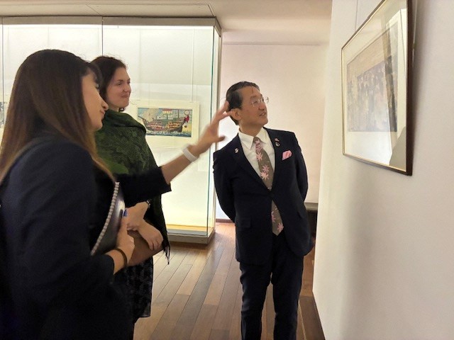 ・面談終了後に、企画展展示のため渡仏されていた株式会社水木プロダクションの原口智裕代表取締役、原口尚子取締役と面会した。また、ギメ東洋美術館の学芸員の案内により、ギメ東洋美術館内を視察した。