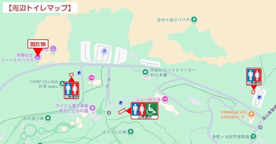 トイレが使用できない期間は、施設入口及び県HPにて周辺のトイレの利用を案内しています。