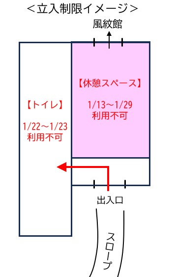 工事に伴い施設への立ち入りの制限(休憩スペース・トイレ)が必要となりました。