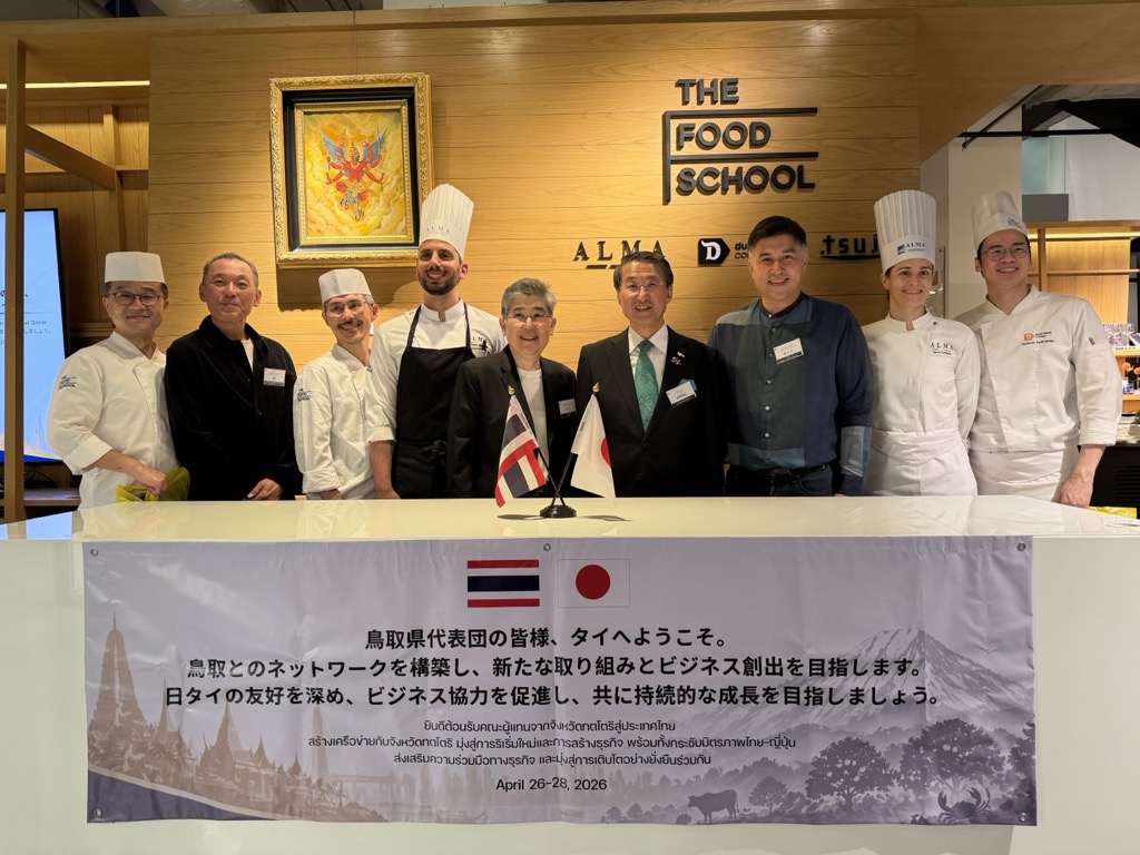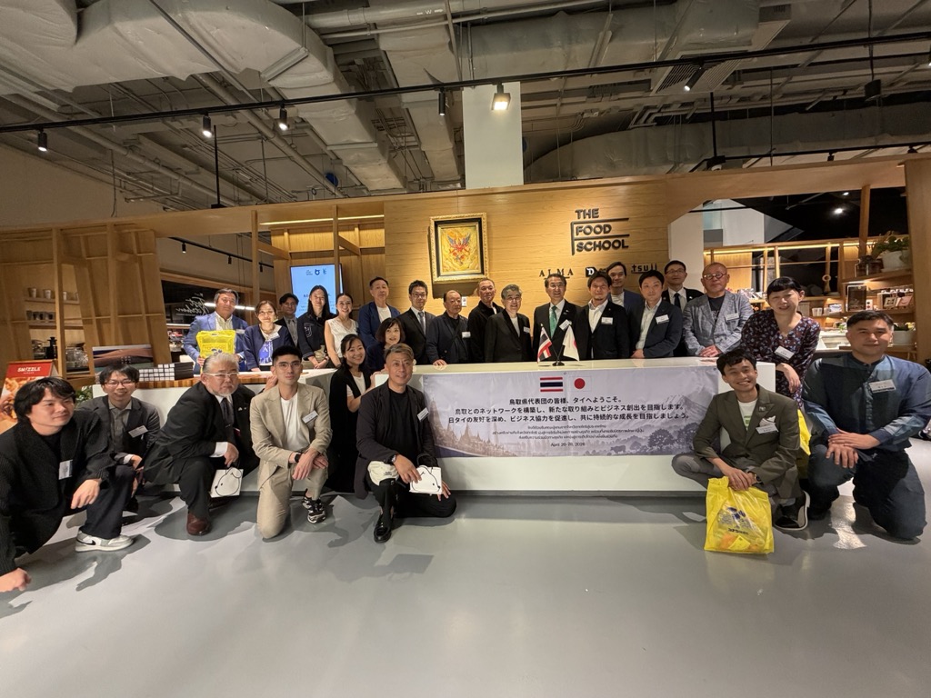 4月26日(日)、知事と県内企業による鳥取県経済団がタイ・バンコクを訪問し、大阪・関西万博を契機として交流が始まったタイの企業グループ関係者等との友好関係を更に深化させ、県内企業のプロモーションやビジネスマッチング、本県の魅力や県産食材のPR等を行うため、タイ経済界有志企業とのビジネス交流会を実施しました。