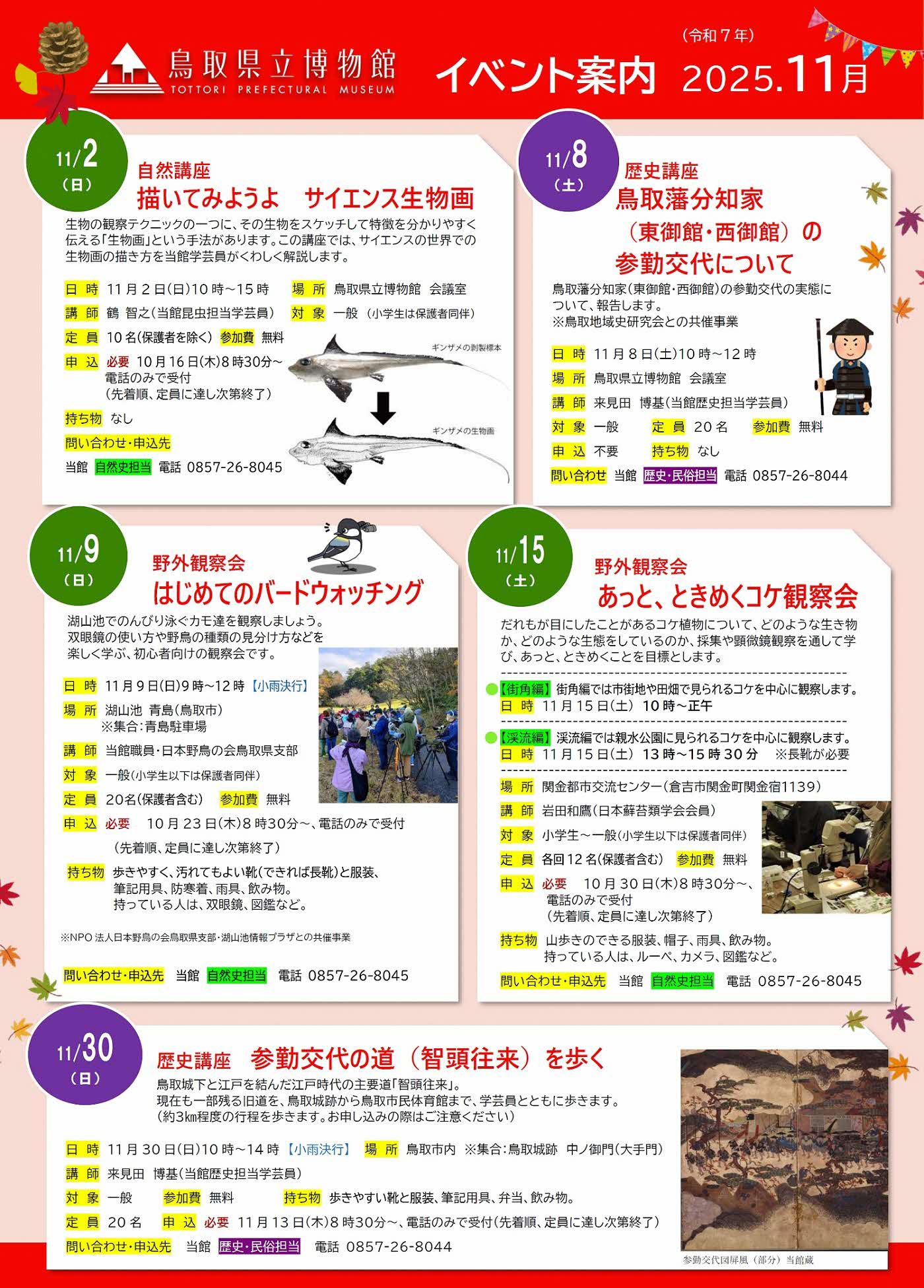 なお、募集案内を掲載いただく場合は、すでに定員に達しており募集を締め切っている可能性があるので、掲載前に鳥取県立博物館に確認くださるようお願いします。