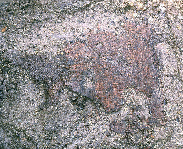 カゴが出土した様子(鳥取市教育委員会提供)