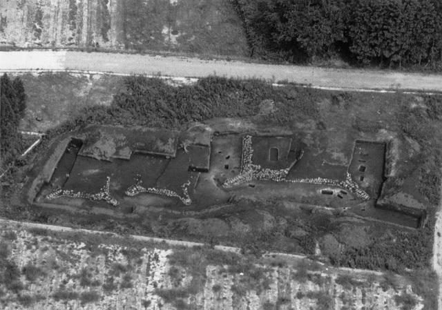 | 概 要 | 天神川の支流である国府川(こうがわ)の近くにある四隅突出型墳丘墓(よすみとっしゅつがたふんきゅうぼ)群で、調査で3基確認されました。最も大きい1号墓は突き出した部分を含めると東西が17.8mあります。 墳丘の斜面と隅の突き出した部分には川原石が貼られ、突き出た部分の上側には大きめの平らな石が1列に並べられて墓の中に入るための道としていました。また、1号墓の周辺には子供のものと思われる墳丘のない小さなお墓が12基造られていました。 |