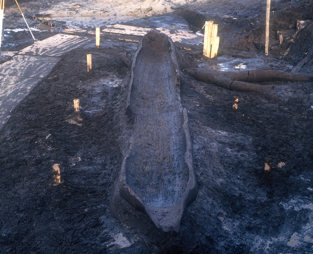 | 概 要 | 湖山池の近辺にある遺跡で、縄文時代の丸木舟や櫂、ネット状の編み物、石のおもり、多くの縄文土器などがみつかっています。丸木舟は2艘出土しており、同一遺跡から2艘もの丸木舟が出土した例は全国的にも珍しく、その内の1艘の大きさは、全長7.24mで全国でも最大級の大きさです。この丸木舟2艘は、現在、県指定保護文化財として鳥取県立博物館に展示されています。 縄文時代以外では、弥生時代の住居跡や農工具、土器、奈良・平安時代の掘立柱建物や多数の土器が出土しています。特に奈良・平安時代の遺物には、円面硯などの古代の役所関連のものもあり、湖山池周辺の古代行政を知る上でも貴重な情報を今に伝えています。 |